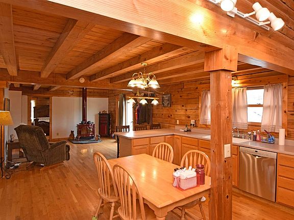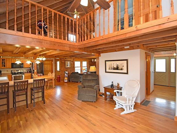 One of kind log cabin offering 2326 sq ft of living space on 29 acres with 2 bdrms, loft that could be 3rd bdrm, 2 full & 2 half bths. 1st floor master. 75 ft wrap around porch, full finished basement. 36x64 Pole barn with horse stalls. About an acre of fenced in area. Adjoining neighbor would be interested in purchasing 20-25 acres if needed, ask agent about details.