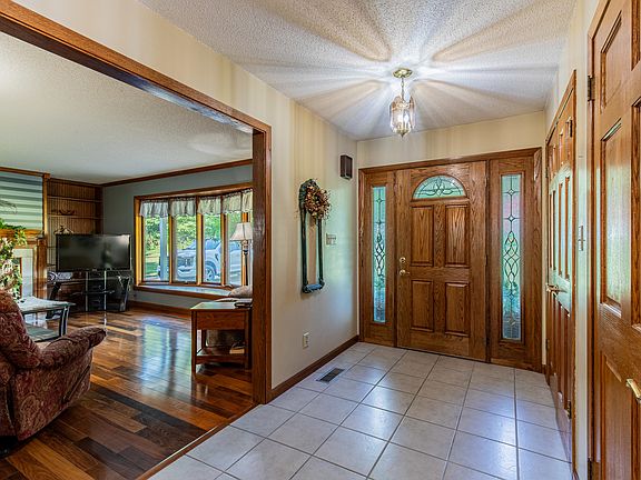Great location on Lover's Lane! The living room has a wood burning fireplace, crown molding, bay window and built in bookcases. The island kitchen, designed by Someone's in the Kitchen, has two pantries and tons of cabinets and counter space. Main floor laundry has a built in ironing board. Located on the main floor, the 14x23 master bedroom is so spacious. Master bath features a heated floor, heated towel bar and tiled walk in shower. An additional room on the main floor is currently being used as a den, but could also be a bedroom. Upstairs, there are 4 bedrooms and a recently updated bathroom with another tiled shower. Large closets in hall and roofline provide ample storage space. Hardwood floors are 3/4" oak and trim is solid oak on main floor. Two new windows were recently installed in the master, also one in the master walk-in closet and one in the den. Furnace and AC are only 5 years old and roof was new in 2011. The Kinetco system and water pressure tank were installed in 2024. Now let's look at this basement. So much potential here! The foundation is poured concrete with 10 ft ceilings. Even with a drop ceiling, there will be plenty of room for exercise equipment, etc. Electrical service is 600 amp. There is also garage access from the basement to facilitate a workshop or project area. With a huge window already in place, this full basement is ready for your imagination to make it a great family room or rec area! Outside, the extra lot to the south ensures space and privacy. Enjoy the quiet as you sit on the brick patio overlooking the valley below. Plenty of deer, birds and other wildlife roam this area. So peaceful, yet just minutes from town. Great home! Schedule your showing today!