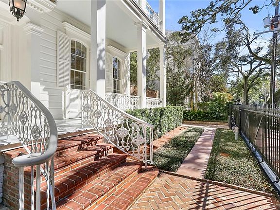 Classic 1865 Garden District double gallery Greek Revival and renowned designer's personal home, recently featured on the cover of Elle Decor. Extensive 2021 renovations executed by Yazoo. Original elegant details abound including cast iron railings, an exquisite foyer with historic Zuber wallpaper, two large original chandeliers, 13' ceilings, plaster moldings & medallions, marble mantles, gorgeous stairwell and pine floors. Incredible new kitchen & bonus back kitchen with marble floors, stainless steel island, Wolf & SubZero appliances, induction & gas cooktops, and large French doors that let in fabulous natural light. Grand views from the kitchen to the gorgeous, large flagstone courtyard with high, lush walls for extra privacy - and room for a pool. The primary suite offers a full dressing room, two baths that connect in a luxurious center shower, and balcony access. Three more bedrooms, 2 baths and a large laundry complete the second floor. Third floor offers 2 more bedrooms (one currently used as an office), a full bath, large cedar closets and a massive walk-in attic. Custom tile, light fixtures, and drapes throughout. The entire property is secured/gated and there is one off-street electric gated parking spot. Whole home generator, newer tankless hot water heater, updated electrical, plumbing and substantial HVAC improvements. Prime Garden District block with fantastic neighbors. This thoughtfully redesigned home is refined, comfortable, beautiful, and not to be missed.