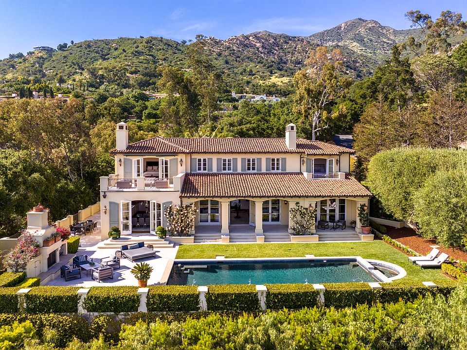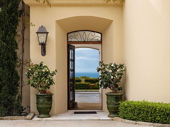 Spectacular and tranquil ocean views from this classic Mediterranean estate designed by renowned architect Don Nulty. This beautiful residence showcases a gracious open floor plan, elegant rooms, and an expansive patio perfect for entertaining, and dining al fresco. The grand and spacious living room is anchored by a handsome fireplace and features stone floors and large French doors with sweeping vistas. The gourmet kitchen has been newly remodeled and hosts top-of-the-line appliances and custom cabinetry. The primary suite enjoys an abundance of natural light and has its own private balcony overlooking the ocean. The sparking pool with spa is surrounded by beautifully curated gardens and a patio with a built-in BBQ and fireplace. Enjoy the California lifestyle in this classic and exquisite estate offering exceptional privacy and serenity.