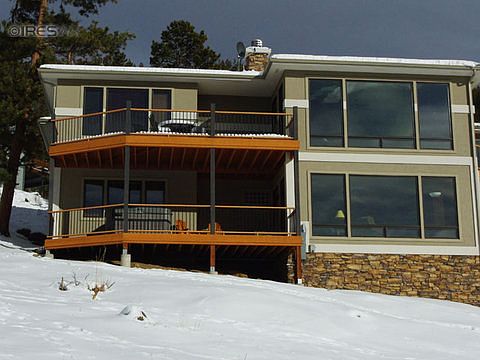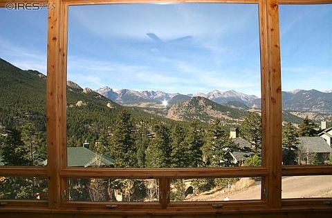 Serenity by Darling Enterprise, an exceptional duplex custom home in Windcliff Estates. Panoramic Rocky Mountain views everywhere! Step into the National Park and Forest. Please see separate sheet for the many custom features of this home, including huge Great Room, gourmet kitchen, custom cabinets, heated garage, luxury baths with custom stone and tile, two fireplaces, slate floors in public areas, in-floor zoned radiant heating, two living levels with decks, and large outdoor hot tub.