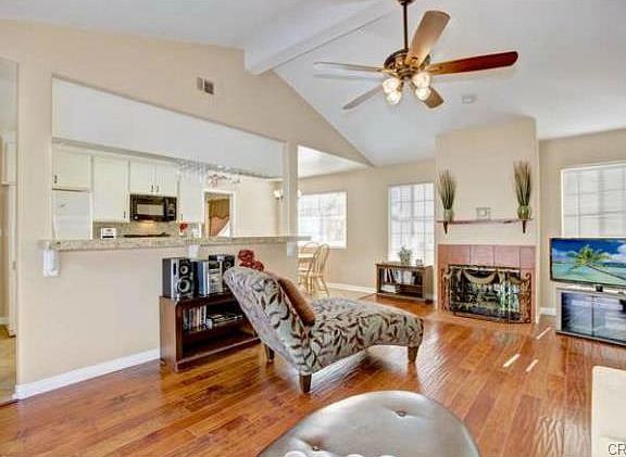 This beautiful Spanish style home built in 1990 is the home you have been waiting for. Beautiful landscaping welcomes you as your walk to your new front door and into the bright and light 3 bedroom 2 bath homes with a spacious living room offering vaulted ceiling, wood like distressed floors and newer sliding glass door leading out to your private and charming patio. A Large Formal dining room leads you into the great room featuring the kitchen with granite counters, bar seating, breakfast nook and a family room with a cozy fireplace. The family room also offers newer sliding glass doors leading out to your charming patio. The bright master bedroom boasts a spacious walk in closet. The home features an alarm system, ceiling fans throughou