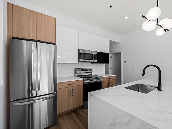 Sleek interiorsHigh-end finishesIn-unit laundryStainless steel kitchen appliancesBike racksOpen floor plansIndoor parking garage