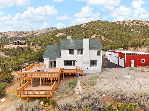 Welcome to the Top of the World-Literally. Have you ever dreamed of living above it all? Perched at a breathtaking 5,640 feet in Herriman-just 360 feet from the mountain's summit-this extraordinary estate offers more than just a home... it delivers a lifestyle few will ever experience. With panoramic, jaw-dropping views stretching from Salt Lake to Provo, this property captures one of Utah's most iconic and unforgettable vantage points. Each morning, wake to nature's masterpiece as the sun rises over the Wasatch Front, casting hues of gold, rose, and amber across the valley below. Floor-to-ceiling windows and expansive decks bring the outside in-immersing you in the natural wonder of shifting skies, towering peaks, and the peaceful rhythm of mountain life. As night falls, the valley transforms into a glittering sea of lights-a cityscape that stretches endlessly beneath a canopy of stars. Whether you're sipping coffee at sunrise or hosting friends under the evening glow, this home offers a front-row seat to nature's most dazzling performances. From the moment you arrive, a stunning water feature greets you, setting the tone for the elegance and serenity found within. The formal living room welcomes guests, while the open-concept family room and chef's kitchen are designed to impress. The kitchen is a true showpiece, featuring a farmhouse sink, peninsula island with bar seating, tile floors, and a sun-soaked dining area framed by modern windows. The vaulted family room boasts a cozy gas fireplace and show-stopping valley views that will leave you breathless. The main level also features a generous laundry room with dual washer/dryer setups and a peaceful primary suite that captures the same awe-inspiring vistas. Step outside onto the expansive deck-your private stage for unforgettable sunsets, summer fireworks, and tranquil starlit evenings in this pristine, quiet location. Upstairs, you'll find three additional bedrooms, including a luxurious second primary suite with vaulted ceilings, bay windows, a spa-like jetted tub, separate shower, modern vanity, and a spacious walk-in closet. The daylight walkout basement is built for entertainment, featuring a large family room, wet bar, and access to the lower deck-perfect for a hot tub under the stars. A stylish three-quarter bath, oversized storage/den space, and potential for a full mother-in-law suite add flexibility and function. Additional Highlights: freshly updated exterior stucco and newly paved private road, main garage with epoxy floors and custom storage, two detached shops (one fits 23 vehicles, the other 34, ample RV parking and a large storage shed, fenced corral-horse property potential, pellet stove, dog run, and thoughtful upgrades throughout, proven Airbnb potential ($200$450/night, seasonally) This is more than just a home-it's a mountaintop masterpiece. Opportunities like this are rare. Come claim your slice of the skyline. Buyer and Buyer's Agent to verify all information. Square footage figures are provided as a courtesy estimate only. Buyer is advised to obtain independent measurements.