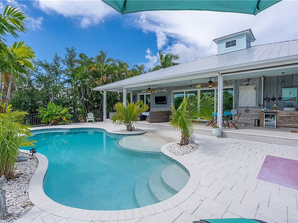 Experience the charm of island living in this beautifully appointed 3-bedroom, 2-bath pool home located in the quiet waterfront community of Bokeelia. Fully furnished and thoughtfully maintained, this home features a bright open floor plan with vinyl plank flooring throughout, a spacious living area, and a modern kitchen equipped with stainless-steel appliances and abundant cabinet space. The split-bedroom design offers privacy for guests, while the primary suite includes a walk-in closet and direct access to the lanai. Enjoy outdoor living at its finest with a screened lanai featuring motorized screens and an open-air pool surrounded by lush tropical landscaping, perfect for entertaining or relaxing in complete privacy. Ideally situated just minutes from local marinas, restaurants, and the Gulf, this property captures the best of Pine Island living. Offered mid-November 2025 through April 2026. Pets allowed upon approval. No smoking; taxes, and cleaning fee apply.