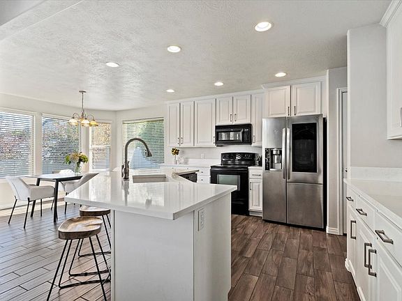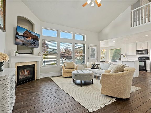 Spacious, bright Herriman home with room for everyone and everything! The main level features a large formal living room with vaulted ceilings, an updated white kitchen with a broad island, quartz countertops, and open dining space with a cozy corner fireplace. The oversized primary suite offers vaulted ceilings, dual vanities with new quartz counters and faucets, a euro-glass shower, garden tub, and walk-in closet. Convenient main-floor laundry. Upstairs you'll find 3 bedrooms, a full bath, and a versatile loft/den. The fully finished basement includes 2 bedrooms, full bath, large living room, bonus room with full kitchen (needs new oven), and generous storage. Tandem 3-car garage with shop space and extended driveway parking. Bright, inviting, and beautifully functional - this home checks every box! Square footage figures are based on recent appraisal measurement.