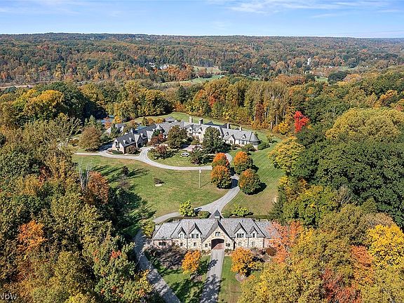 An estate like none other, "Ravencrest" is a magnificent property located in the most coveted Hunting Valley location overlooking the Chagrin Valley! Comprised of approximately 153 acres the property includes the main house, two carriage houses, an in-ground pool, pool house, and tennis court! A long private driveway meanders through a spectacular forest and through a fabulous stone portico leading to the main house! Built with the finest of materials including hand cut stone walls and a Vermont Slate roof, this home spans over 32,000 sq. feet on three levels. Designed for entertaining, the main floor has an incredible floor plan highlighted by a spectacular Grand Hall, a banquet size dining room, music room, and Clive Christian designed kitchen! There are more intimate family spaces including a hearth room, private offices, a paneled library, and the first-floor owners wing which is second to none! The expansive second floor has 5 private bedroom suites, a family room, bunk room, and more! The walk out lower level is extraordinary featuring an indoor lap pool, rock climbing wall, state of the art gym, sports court, spa, massage room, craft room, gift wrapping room and more! There is a movie theatre, night club with stage, card room, wine cellar with tasting room, a Mahogany bar, and an additional family room/game room! Outdoor areas include expansive stone terraces, an infinity pool, pool house, jacuzzi, and more! This is the most extraordinary property imaginable!