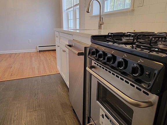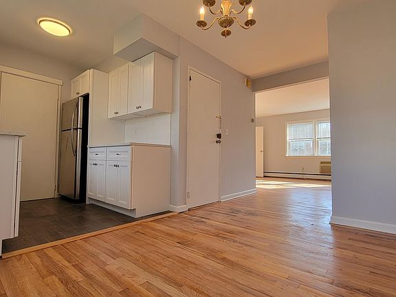 Very spacious (900 S.F.), just renovated, 2nd floor garden condo. Tons of natural sunlight and hardwood floors throughout. Kitchen with granite counters, ss appliances, pantry and separate dining area. Huge bedroom (16'X11')with plenty of closet space. Remodeled Bath. Laundry on premises. Garage parking plus outside parking in shared lot. Courtyard entrance. LOCATION! only 1/2 block to NJ transit bus 195 to Port Authority. Close to shopping, parks and just over the ridge to Montclair restaurants and shops. This unit overlooks a beautifully landscaped, park-like central courtyard and offers front and rear entrances. Baseboard heat with 2 built in air conditioners. HEAT and WATER included. No smoking, no pets in unit. Renter's insurance required. HEAT and WATER included. No smoking, no pets in unit. Renter's insurance required. One Month's rent broker's fee. 1 1/2 month's rent security deposit Credit Report, Income Verification, tenant application