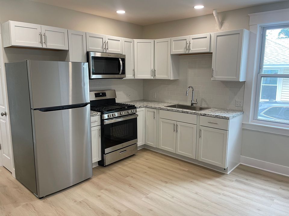 Heating systemLaundry hook-upNew kitchen cabinetsStainless steel appliancesOff street parkingHigh ceilings