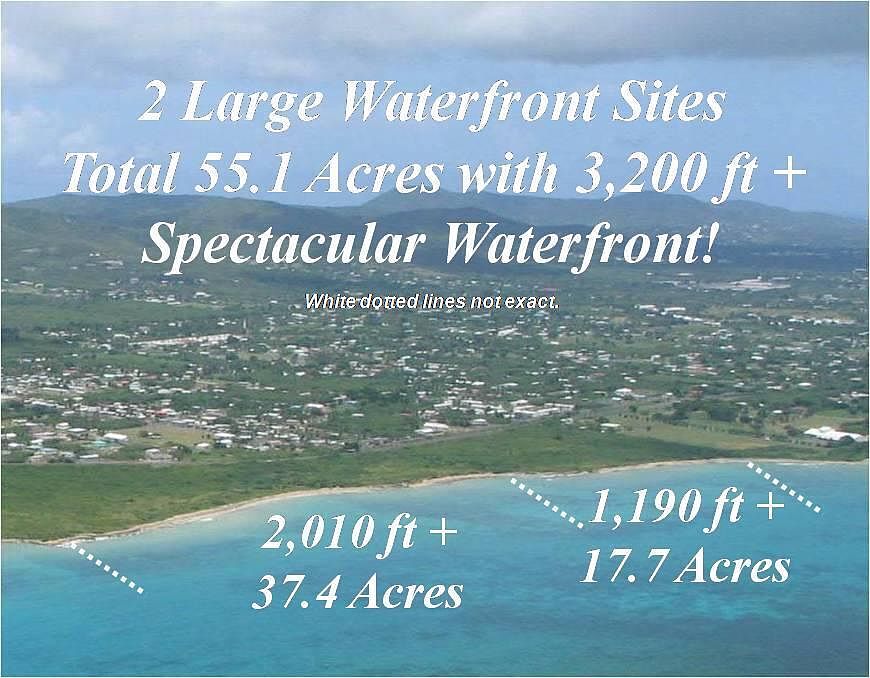 Extraordinary Waterfront Development Opportunity in America's Paradise awaits you! Presenting the magnificent Estate Whim offering, spanning over 55 acres of prime land zoned R-3. Strategically positioned, the site offers direct access spanning over 3,000 feet onto Melvin Evans Highway, merely 7 minutes from Henry Rohlsen International Airport, the Frederiksted cruise port, St. Croix Heritage Trail, Historic Free Town Frederiksted, the Leatherback Turtle and Nature Preserve, and an array of other amenities, ensuring unparalleled convenience and accessibility. Revel in the soothing melody of ocean waves, breathtaking south shore panoramas, and an expansive stretch of over 3,200 feet of pristine sandy coastline - equivalent to more than 10 city blocks! The addresses encompassed are 144 Whim, REM 152 Whim, REM 153 Whim and 170B Whim. The plots can also be purchased separately - see MLS 24-236 (17 Acres for $2.9M) and MLS 24-238 (37 Acres for $$5.7M)