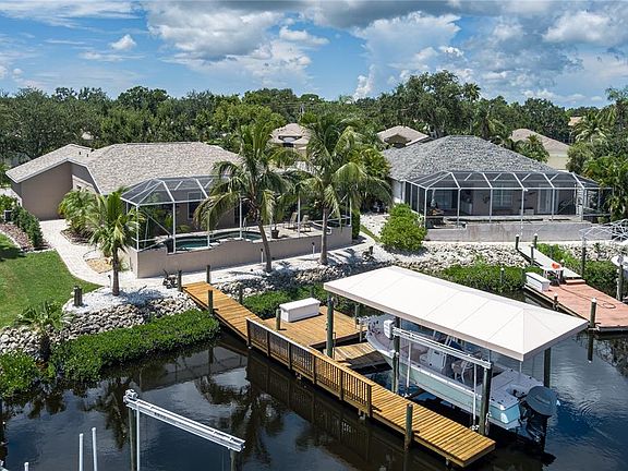 PRICE REDUCTION for this Waterfront Paradise with Direct Gulf Access. Welcome to your dream home in the sought-after River Pointe community, where boating, entertaining, and luxury living come together. The original owner's pride of ownership prevails in this beautifully updated 3-bedroom, 2-bath residence. The home sits on a wide saltwater canal at the end of a tranquil basin—offering privacy, minimal boat traffic, stunning views of dolphins dancing, manatees floating, mullet jumping, AND easy navigation to the open waters of the Manatee River, Intercoastal Waterway, and Gulf. The property is a Boater’s Dream, complete with dock, a covered lift that accommodates boats up to 28 ft and 9,000-pounds, and a floating dock. Features include a well-built and modern home. This personality plus home offers a spacious 3-car garage for vehicles and storage; high ceilings, split floor plan, new roof (2020) for peace of mind, remodeled kitchen in 2021 with wood cabinetry, quartz countertops, and new appliances. New washer December 2025. Updated bathrooms (2021 & 2025) with modern finishes, new windows installed in 2022 and 2025 for energy efficiency and natural light and window hurricane screens. YOUR Outdoor Oasis offers an inground pool with waterfall and 8 spa jets, screened lanai for year-round enjoyment, an expansive paver deck and covered entertaining area—perfect for gatherings, grilling, or relaxing poolside while enjoying the serene canal views to create a true Florida escape. River Pointe residents enjoy low HOA fees and access to a private community boat ramp. This home is the ideal blend of luxury, functionality, and waterfront lifestyle. This property is located about two miles West of I-75 via SR 64, close to Costco, Publix, Target and Walmart, entertainment downtown Bradenton, River Walk, and many fine eateries. Whether you're an avid boater, entertainer, or simply seeking a peaceful retreat with upscale finishes, this home checks every box. Schedule your private showing today and experience the best of Florida living. Possible temporary 1-0 buydown rate covered by lender. Details available.