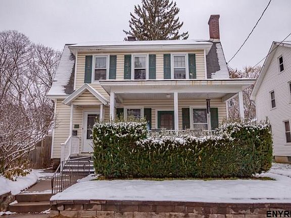 GREAT price for Scotia! Home sold AS-IS. Larger 4 bed, 1.5 bath home in Scotia Village! Just needs some TLC and will shine again! Hardwood floors throughout, large first floor with living room, dining room, kitchen and den. Ample sized bedrooms, built-in cabinets, and lots of charm and character make this a wonderful find! Front porch overlooks residential street with sidewalks, all in a convenient village location. Garage sold as-is.