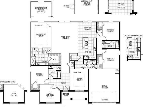 Guest living quartersLiving retreatsGreat roomOpen concept areaFormal dining roomOversized kitchenBreakfast area
