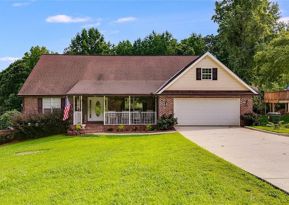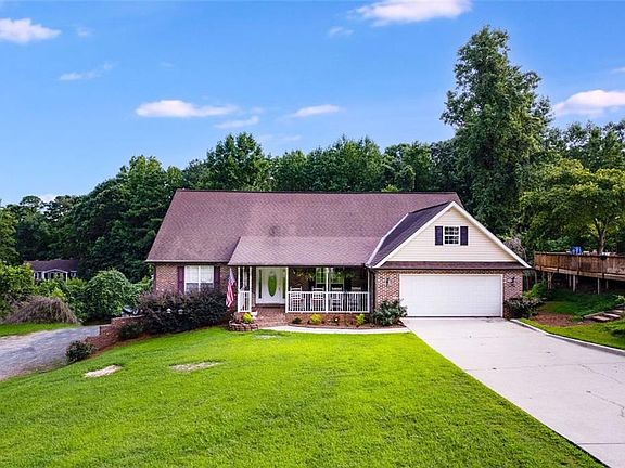 Welcome home to this maintenance free ranch nestled on 3.2 acres! The rocking chair front porch invites you in to this 3 bed 2.5 bath home. The spacious great room sets the stage for cozy evenings with loved ones. The bright open kitchen features a breakfast bar, custom cabinetry and leads to a separate dining room for entertaining guests. The split bedroom plan boasts an oversized master suite with a large walk in closet and the en-suite bath has a separate tub and shower. The secondary bedrooms are sizeable and share a bathroom between them. The delightful screened in back deck is perfect for enjoying the night air. Need more room you say? The huge unfinished basement can be completed to provide additional space for your needs. Less than 30 minutes from Atlanta and the Battery with easy access to I-285 and I-20. No HOA so come park your toys here!