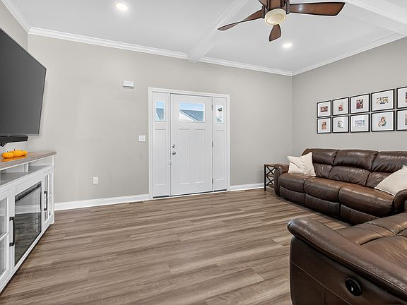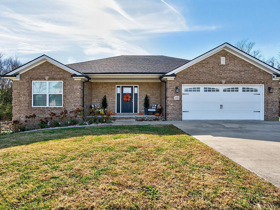 Experience the best of modern, low-maintenance living in this stunning 6-year-old split ranch on nearly a 1/2 acre of fully fenced property. Step into a bright, open space featuring builder upgrades like soaring specialty ceilings, a tiled Primary walk-in shower, and granite countertops in both the kitchen and primary bath. The outdoor oasis awaits with a covered deck overlooking a private wooded area, plus an established 1,000 sqft vegetable garden and peach and cherry fruit trees. Don't miss the oversized primary walk-in closet and the valuable built-in workshop/storage area in the tall, double-door crawlspace. This is not just a house—it's a move-in ready retreat.