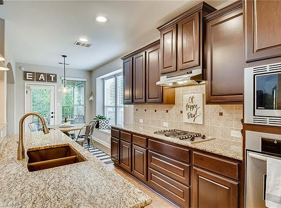 - Kitchen: Breakfast Bar, Open to Family Room, Breakfast Area, Granite/Marble Counters