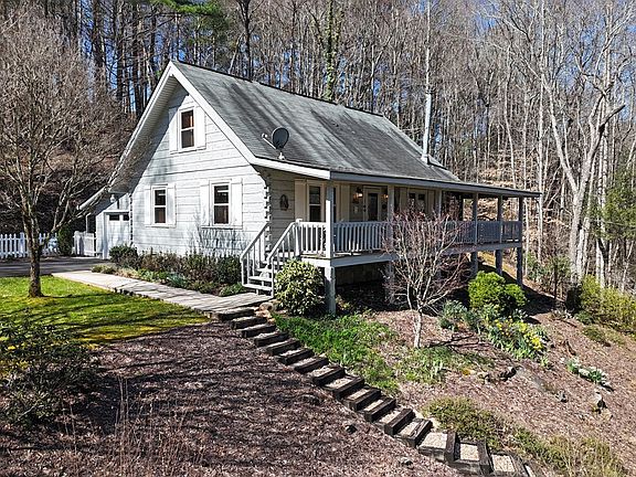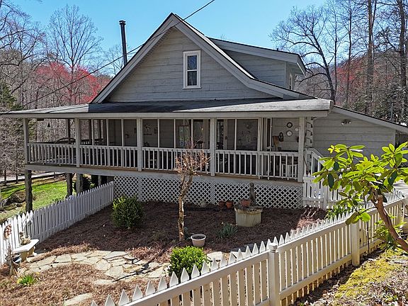 Charming Cabin with McClure Creek running swiftly in the front yard. There is a gazebo on the creek to enjoy the water. A beautifully landscaped yard with the national forest on the other side of the road. Cute as can be out building for storage. The front porch and screened side porch allow you to enjoy the view of the neighbors' pond and beautiful grounds. The open floor plan with kitchen and dining room off the great room; which has a wood stove. The cabin has a master on the main with a large tile shower in the master bath. There is a bath off the great room. The upstairs has a large loft with one bedroom, bath, and sitting area. The sitting area could be 3rd sleeping area. Enjoy the beauty of the Cashes Valley area, Blue Ridge, and Ellijay as you relax in the mountains of North GA. This beauty comes furnished with the exception of the Master Bedroom. A MUST SEE!!!