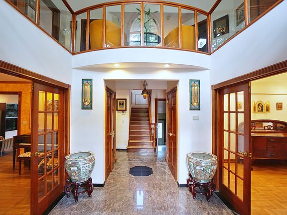 Sanctuary on Grymes Hill! Welcome Home to this Sun Drenched 4900 sq ft, 4 Bedroom, 4 Bath, 2 car garage home, all on over 12,000 sq ft of land. This sprawling center hall multi generational colonial has room for the whole family. Solid Mahogany Entry door, French doors, cathedral ceilings, granite floors, parquet and wood flooring, 2 wood burning fireplaces, intercom system, a wood framed solarium, custom mahogany imported windows throughout the entire house, tons of closet space are just some of what this home has to offer. You will surely feel like you're in your own green sanctuary away from the city, while still being centrally located to parks, shopping, and stunning views of the NYC skyline, and still only a short drive, bus ride, or ferry ride from the rest of NYC or even NJ! LEVEL 0: Basement. Granite floors, Full Bathroom, Kitchen hookups, Access to Solarium. LEVEL 1: Grand entry Foyer with 2x coat closets, Cathedral ceilings and Granite floors, French doors to Formal sprawling formal dining room with WB Fireplace, French doors to over sized formal living room, wood floors throughout, Family room with solarium and WB Fireplace #2, .5 Bath, Lg EIK with custom built-in hutches & access to spacious deck & yard, 2 car garage with attic storage. LEVEL 2: Vaulted Ceilings in sitting area overlooking the entry foyer, glass paned bannisters, extra large imported custom mahogany wood Bay windows in every bedroom, sitting area, office nook, Master Suite w/4 piece bath (jacuzzi tub), skylight, and large WIC, Bedroom #2/Den w/skylight, Full Bathroom w/Heat Lamp & Laundry Room/closet, Bedroom #3 vaulted ceilings, Bedroom #4 w/vaulted ceilings, wood floors throughout. LEVEL 3: Attic/storage