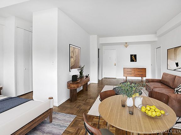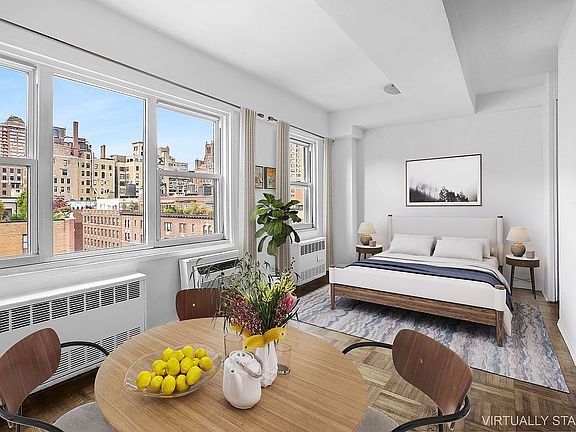 For the first time on the market, this spacious alcove studio offers stunning city views and beautiful western sky vistas. The maintenance fees are exceptionally low, covering gas and bulk-rate electricity. Residents can also enjoy competitively priced cable with premium channels and Wi-Fi. This co-op allows up to 70% financing, with co-purchases considered on a case-by-case basis. Please note that pied- -terres and guarantors are not permitted.