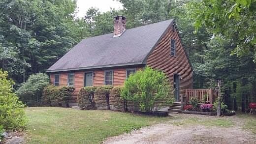 Lovely dormered cape situated on nearly 2 acres in a private, well landscaped setting. Features a large master with walk-in closet, wood floors, 2 full baths, generator for power outages, and bonus room in basement. First floor bedroom is currently used as a den. Large workshop loaded with storage has a wood stove and could also be used as an artist's studio or made into a guest cottage. Located on the Hollis line and only a 45 min commute to Portland.