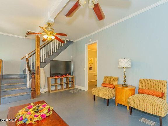 The home features a spacious living room at the entrance, followed by a delicate dining area full of simplicity and elegant details. Eat-in kitchen is nice and clean, plus 5 bedrooms with 2 full bathrooms with an additional upstairs living area. Washer and dryer located on first floor. House has 4 car parking spaces total and can be used as a single- or two-family home. Barn on the side is included and is definitely a plus. Heating system, hot water heater, and roof recently updated.