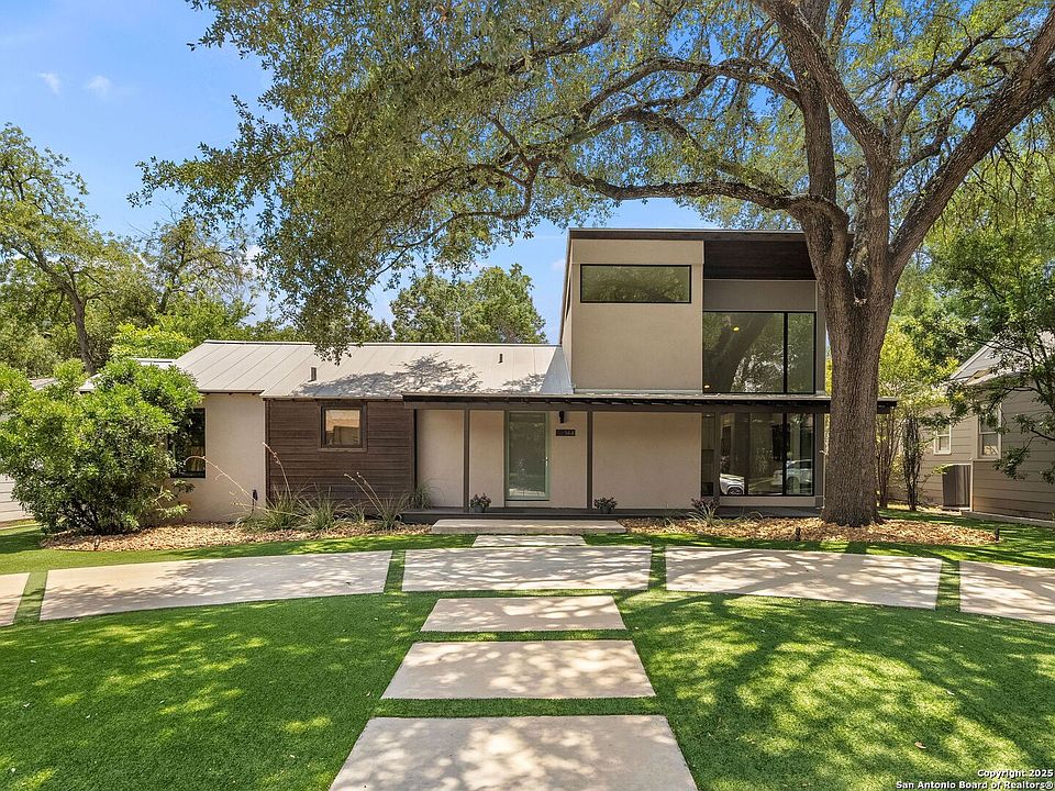 Introducing a fabulous contemporary single-story home designed by award-winning architect Tobin Smith, situated on a .23 acre private lot in the coveted Alamo Heights neighborhood. Originally taken down to the studs and fully reimagined in 2013, this residence embodies modern lifestyle trends through the use of top-tier building materials and appliances, striking a balance between luxury and functionality. The 2,669 sq. ft. main house features three generous bedrooms, including a private owner's retreat with a spacious ensuite bath, custom-built closets, and a private outdoor shower-accessible directly from the primary bath. The main living areas are designed for entertaining, while a detached oversized two-car garage boasts a 672 sq. ft. second-story suite with full bath and separate HVAC, ideal for guests, a home office, or personal retreat. Outdoor living shines with a Brad Sharp heated pool and spa, installed in 2016 with Pebble-Tec finish, surrounded by a low-maintenance, water-conserving lawn and landscaping. Experience the exceptional lifestyle this home offers, combining modern design, thoughtful amenities, and a setting made for entertaining, all in the heart of Alamo Heights.