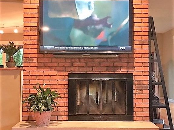 This beautiful home offers 3 bedrooms with 3 full baths, cozy living room with wood burning double fireplace that you can enjoy from the living room or the kitchen, spacious eat-in kitchen with island, den downstairs leading out to a two car garage, beautiful hard wood floors, lots of natural light and a huge deck overlooking the woods.