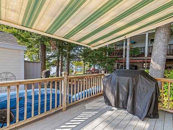 Opportunity to own in desirable waterfront Eastern Shores. This detached seasonal condo has 1 Parking Spot, Kitchen, Living Room, primary bedroom, 2nd Bedroom with bunk beds and a bath all on one level. Sit out on the deck and enjoy the views of Paugus Bay on Lake Winnipesaukee. This waterfront community has 2 beaches, moorings and boat slips. There is a very good chance to get a mooring for your boat this season. The year-round community recreation room has a billiard table, bathroom and a coin-op laundry. In addition to the two beaches there is a playground on the property. There are many activities to do in the area for everyone. Close to the Weirs, Funspot and Gunstock Mountain. There are several restaurants within walking distance too. This association allows pets. You have the ability to expand to go up 35 ft within the existing footprint. No rentals allowed. This unit is coming fully furnished and turn key. Schedule your showing today and be in for Summer at the Big Lake.