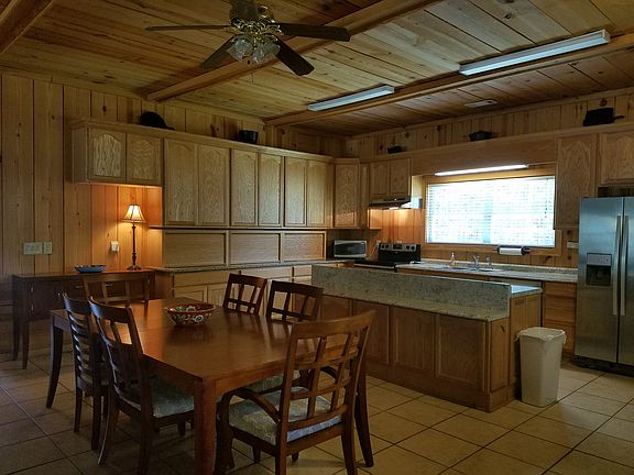 This rustic cabin style home has been used as a family weekend getaway in the country and is situated on 6.08 acres in a beautiful and quiet setting. The spacious open concept kitchen, dining, and living areas allow for large family gatherings and are enhanced with gorgeous wood walls and vaulted wood ceilings. The kitchen is equipped with an abundance of beautiful custom oak cabinetry, large island, and stainless appliances. The three bedrooms feature the same rustic accents as does the bathroom with large vanity garden tub/ shower combo and laundry area. Large covered porch areas span across two sides of the home and a covered RV pad is attached with electrical, water, and sewage washout for large RVS. The wood exterior and metal roofing complete the rustic look and feel of this unique cabin home. Please call Scott at 404-642-0540