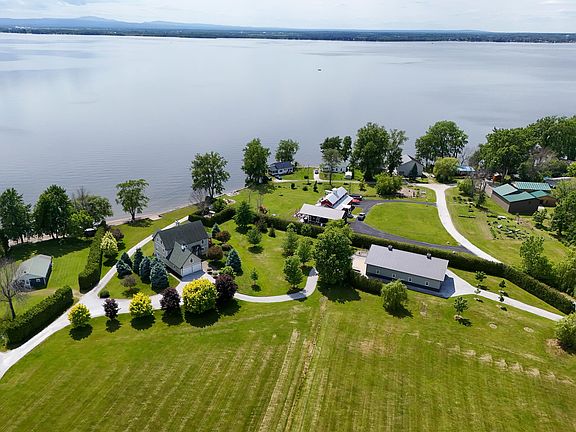 Welcome to 144 Mott Street—an immaculate post & beam lakefront home on 9.56 beautifully landscaped acres with 165 feet of direct Lake Champlain frontage. Built in 2000 using energy-efficient structurally insulated panel (SIP) construction, this 3-bedroom, 3-bath home offers over 4,300 sqft of living space and a rare gradual sandy shoreline with a stamped concrete seawall and boat ramp. Thoughtfully designed, the home and 2,800 sqft workshop are perfectly situated to maximize lake views, privacy, and functionality. The home has a warm and inviting interior with lake views from nearly every room. The main level features an open-concept layout with cherry and slate flooring, a double-sided wood-burning fireplace, a large office, and a laundry room with a chute. The second level includes a vaulted living room with another fireplace, wide pine flooring, two bedrooms, a full bath with a clawfoot tub, an office, and an unfinished bonus room above the garage. The third level is a private primary suite with soaring ceilings that showcase the post and beam construction, a balcony, and a spacious bath with dual closets. The impressive workshop has plenty of room for equipment and vehicles. The grounds have an irrigation system and feature mature plantings including Princeton Gold Maples, Royal Red Norway Maples, and Golden Eclipse Lilacs. Don’t miss this rare opportunity to own a spacious lakefront retreat. Move right in and start your life on the lake!