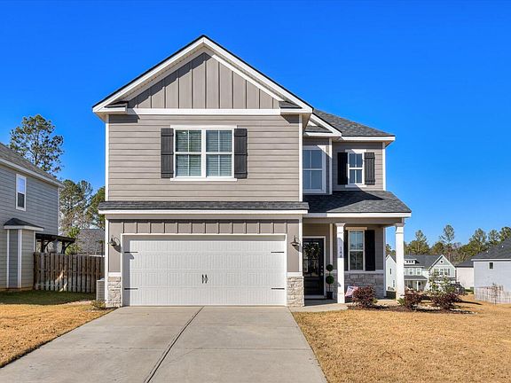 Introducing residence 144 Myrtle Grove Trail, an extraordinary 4-Bedroom, Corner Lot Home, featuring a New Upgraded Roof with Algae-resistant ProLam Shingles, Rated for 130mph Winds & a 10-year Transferable Warranty! Step inside this 2-Story property offering approximately 2,200 SQFT, All Bedrooms Upstairs, and Great Open Layout with a fabulous flow for everyday living & entertaining. The Luxurious, State-of-the-Art Kitchen showcases a Large Island Top, Walk-in Corner Pantry, and Breakfast Room that allows your gatherings to overflow into the Spacious Great Room, where you can huddle around the Contemporary Gas Fireplace. Crafted to inspire comfort, this Faye Plan is complete with Evacore Click Waterproof Flooring on the Main Level, a Shiplap Accent over the Fireplace & Breakfast Room Wall, Powder Room/Half Bath Downstairs, & a Spacious, Open Upstairs Landing. Wake up each morning to an abundance of Natural Light & noteworthy features like Modern Subway Tile & Granite Counter Tops in the Primary Bathroom & Kitchen, and a Separate 2nd Floor Laundry Room. Fantastic location in Evans and the five-star neighborhood of Whispering Pines that offers Modern resort-style pool, 11 Miles of Walking Trails & Sidewalks, 3.5 Acre Park, Community Playground & Garden, 10-foot Fire Pit, Picnic Spaces & More. Schedule a tour of this Move-in ready & Freshly Painted Residence, consciously crafted by South GA Homes in 2021!