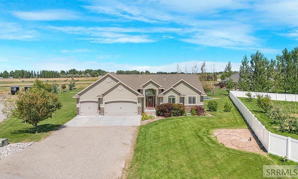 An acre of green grass, big Idaho sky, and a warm home with room for everyone. Set in Terrace Hills, this 6 bed 3 bath gives you easy main level living with more room downstairs. The great room stays bright with vaulted ceilings and a stone gas fireplace. The kitchen sits at the center with granite counters, a functional island, and corner pantry. Dining opens to the backyard for simple grilling and gatherings. The primary suite is a quiet retreat with a soaking tub, tiled shower, and walk in closet. Two more bedrooms and a full bath are close by. Laundry is on the main next to the garage entry to keep boots and gear out of sight. Downstairs brings a large family room with custom built ins, sliding barn doors to a theater with in wall speakers, three more bedrooms, and two flexible rooms for office, crafts, or gear. Outside you get room to live. A full acre with play set, in ground trampoline area, fire pit, and wide open lawn for kids, pets, and summer nights. The attached three car garage and long gravel apron fit trucks, trailers, and toys. Minutes to US 20, schools, parks, the river, Heise, and Kelly Canyon. Space, comfort, and freedom in Rigby.