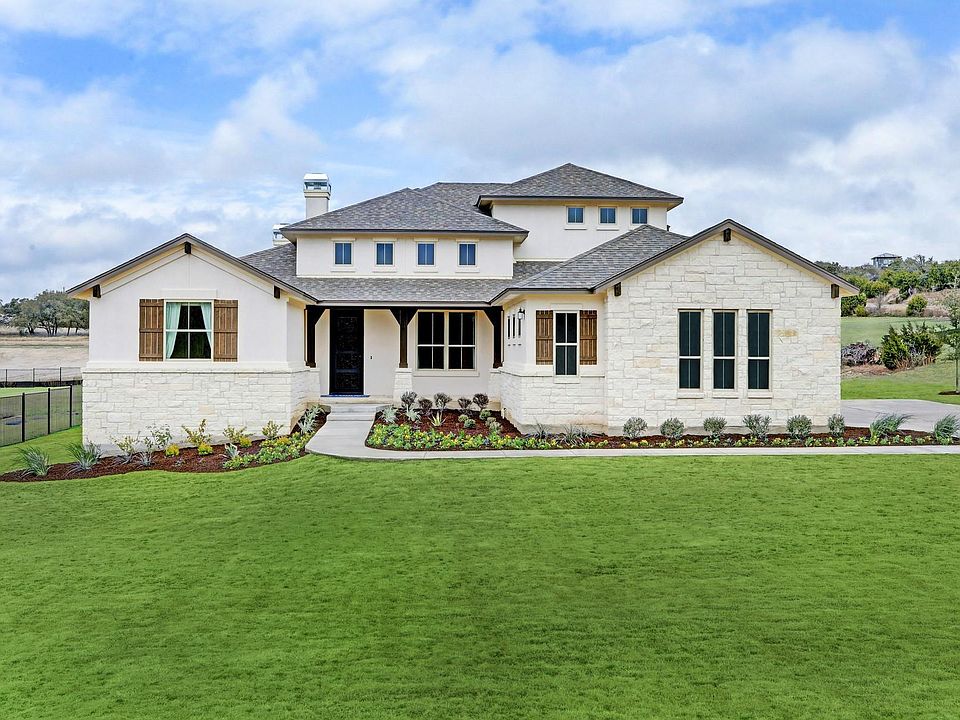 Terrata Homes' Esperanza Model Home. The popular Hampton floorplan with all the features you'd expect in a model home. Situated on an oversized 3/4+ acre homesite, this efficient and open design lives larger than the square footage. With beautiful Hill Country exterior architecture, the downstairs features 3 spacious bedrooms, family and media rooms and 2.5 baths. The upstairs bonus room includes large gameroom, wet bar, full bedroom, and full bath. Oversized covered rear patio with fireplace, outdoor kitchen and sliding glass doors that extend the interior space to the outside. Entertainer’s kitchen with custom, ceiling-height cabinets w/glass insert upper extensions and quartz countertops. Chef inspired appliances - including oversized built-in refrigerator, microwave, double ovens and Kitchen Aide cooktop. Extensive wood flooring including stairs. Master bath lives like a spa and includes custom walk in shower with seating, dual shower heads, frameless glass and a large separate freestanding tub. Family room boasts cathedral ceilings with accent beams and built-in cabinetry. Side entry 3-car garage. Esperanza and Terrata Homes – the perfect combination of Hill Country living and value in the heart of Dripping Springs.