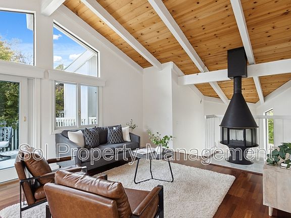 Cozy fireplaceAttached two-car garageNew light fixturesNew paintBig windowsPlenty of natural lightSunny deck