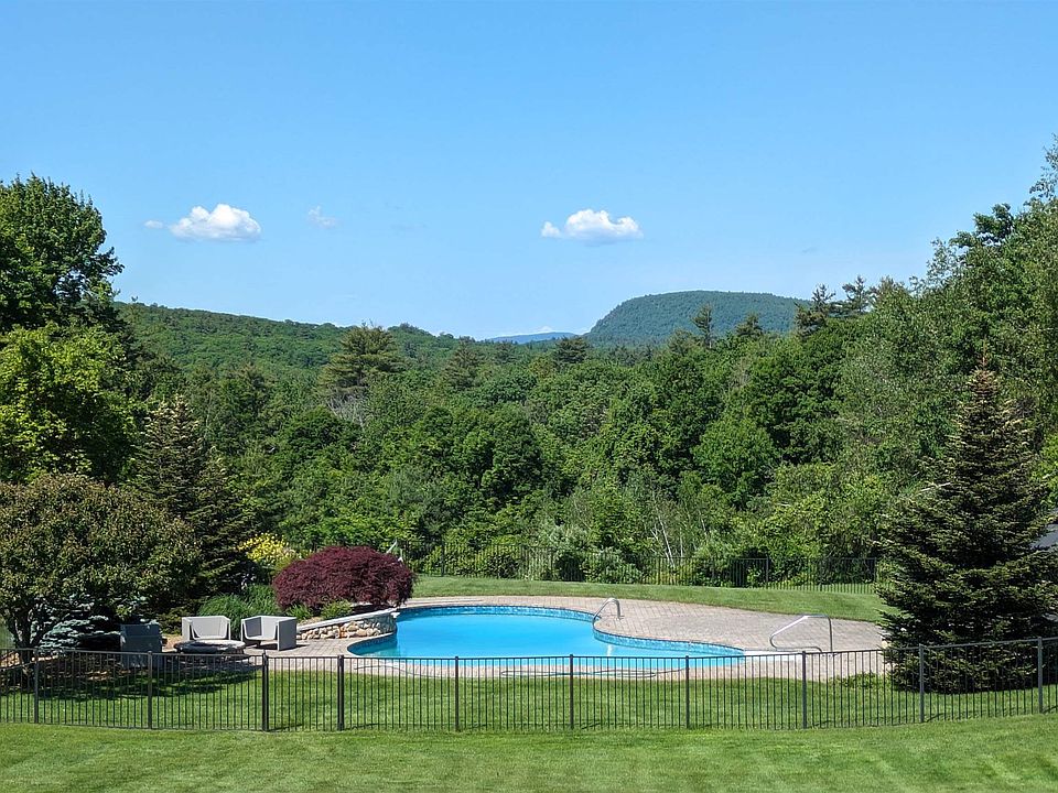 Have you been waiting for a beautiful, custom, open concept property in Bedford that is light and bright with high ceilings, stunning mountain views, a 1st floor primary suite, finished walkout basement, expansive deck overlooking your huge flat, yard with a pool?! The wait is over! This contemporary style cape offers plenty of space and privacy with large, open concept rooms with soaring ceilings, plenty of room to entertain, a cozy gas fireplace, 5 bedrooms, 3.5 bathrooms, a full finished walkout basement (an additional bathroom plumbed in basement) and a yard your family and friends will be envious of. Standby generator, sprinkler system, owned solar panels, pool with pergola, garden space, over 2.3 acres...too many features to list. You must see it in person! Call/text me to schedule your private showing today.