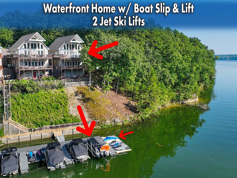 Waterfront home w/ boat slip, 2 ez ports & boat lift. Enjoy lake life at its best in this 4 bedroom 3.5 bath home. Special features include game room, wet bar, pantry, laundry room, storage room for lake toys, plus 3 levels of deck to entertain on. Two primary bedrooms w/ private baths. Spacious vaulted great room & kitchen overlook the lake. New roof, painted decks & more. Your steps away from your boat slip making getting on the lake easy. Gated subdivision. 3-D tour & drone video available
