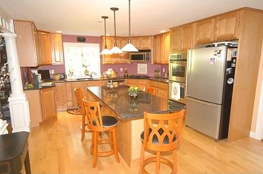 Pristine, custom built 2003 Colonial featuring a high finish level from top to bottom. Gourmet kitchen with granite island, living room with cathedral ceiling and floor to ceiling fireplace, formal dining room, 3 large bedrooms including full length master suite. Lovely balcony deck off second floor, 3 full baths, walk-up attic, rear deck and 2-car garage under. Private lot with good seasonal river views. Truly a unique home!