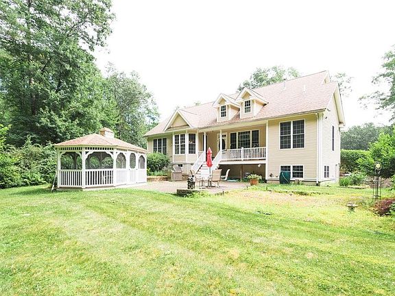 Beautiful curb appeal greets you as you drive up to this stunning cape w/ accenting gable roof dormers allowing for steaming natural sunlight throughout. As you enter notice the open sights from the Foyer into the Formal DR w/ recessed ceiling, LR highlighted w/ a large picturesque window & vaulted ceilings along w/ a built in cabinet/eat in area adjoining the quaint kitchen w/ dining space wrapped in a bay window. Included on the main level is a Master BDRM w/ Full en-suite BA w/ separate shower & soaker tub, 2 Bedrooms - one off the foyer w/ French Doors, a Full Bath & laundry area. The finished upper level presents an expansive skylit room functionable for many uses. Flee outside to a backyard treat. Charming back porch leads down to a brick patio & impressive sized Gazebo to enjoy just under 2 acres of scenic property. Additional features include central heat/ac, sprinkler system, 2 Car Garage & ample parking space.