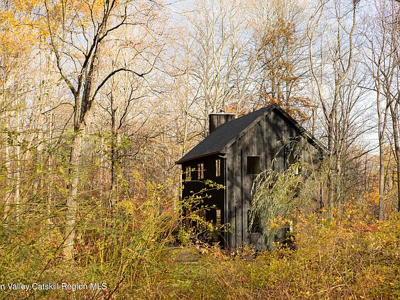 Down a stone path from the main house, overlooking the stream and the surrounding forests, is the studio, currently utilized as a creative space and guest house. It has a wraparound deck that makes it the perfect spot to relax during the summer months, and a powerful woodstove inside for the colder parts of the year.