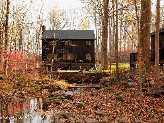 Impeccably crafted timber-frame homeWood-framed garden bedsWraparound deckSwiftly flowing clear streamGuest bedroomPea-gravel fire pit areaDouble-height great room