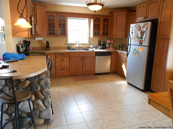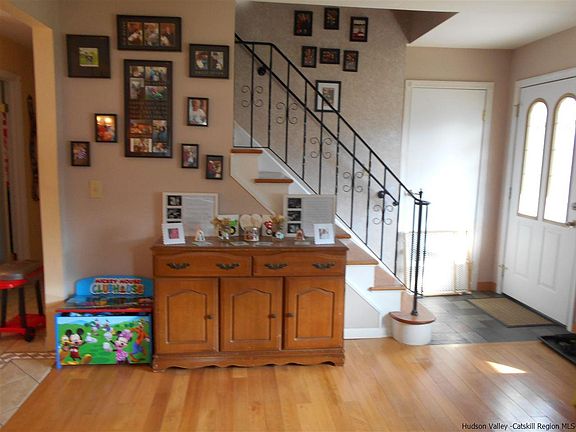 Move in ready, classic cape situated in Old Hurley completely updated inside and out. This 3 bedroom, 2 bath home features beautiful newer kitchen cabinets with appliances and ceramic tile floor with sliders to large, 21 x 9, deck, perfect for entertaining. Open concept to living area featuring hardwood floors and electric fireplace. Large master bedroom, L-shaped, affords extra space for home office or just relaxing, etc. Two bedrooms up with full bath. Full basement provides great work out space or family room with wood stove. One car garage under. All on an oversize lot with mature trees and plenty of parking. Walking distance to the Rail Trail.