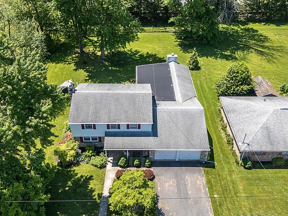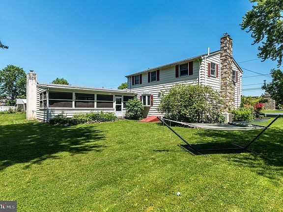 Welcome home to 144 S 4th Street conveniently located in the borough within walking distance to town, the high school, parks, and the Trolley Barn. As you approach the home there is a cozy covered front porch with plenty of sitting room along with an attached two garage with inside entry (perfect for unloading groceries). Beautiful landscaping surrounds the property with mature trees and gardens offering a nice sized lot. Entering the home is the living room with access to the dining room and kitchen featuring crown molding, dental molding mantel with a working woodburning fireplace with a new liner. Under the carpet is the same wood flooring found in the dining room. To the right of the entry is the dining room perfect for entertaining. Next is the kitchen which has access to the laundry room, dining room and living room featuring an eat in kitchen with a large bay window looking out to the backyard. Off of the kitchen is the convenience of first floor laundry and a half bathroom. The biggest surprise is the enormous flex space and family room, which is the heart of this home, featuring a stacked stone feature wall and gas fireplace with access to a screened porch of equal size with a hot tub. The family room has the same wood flooring as the bar area under the carpet. Upstairs you'll find and abundance of storage in the hallway with a double door linen closet and a second closet. Completing the second floor is the primary en suite bedroom, 3 additional bedrooms and the hallway full bathroom. Come see everything that makes this home so special today!