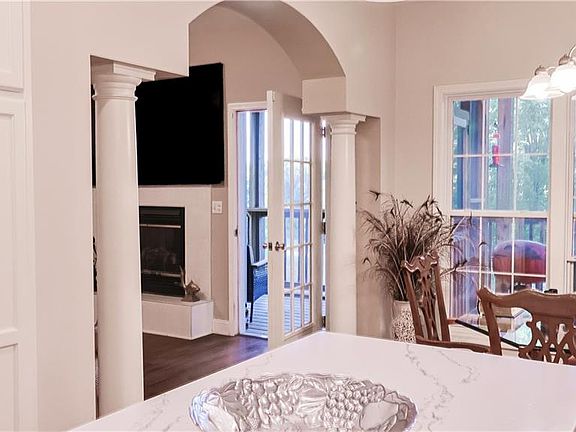 Experience lakefront living at its finest with this beautifully updated home set on a spacious .94-acre lot offering direct lake frontage and private lake access. Enjoy breathtaking views and year-round recreation with your own fishing dock and swim platform—perfect for relaxing days on the water. Step inside to a meticulously upgraded interior featuring a stunning kitchen with elegant quartz countertops, a stylish matching quartz backsplash, and all new stainless steel appliances—ideal for both everyday living and entertaining. Both main floor bathrooms have been thoughtfully remodeled with luxurious new showers, modern vanities topped with Onyx countertops, and sleek new faucets for a spa-like retreat. Additional highlights include plush new carpet in the second and third bedrooms, plantation shutters for timeless style, and a freshly painted main floor that feels bright and inviting. The large back deck, now partially screened in, is perfect for enjoying the outdoors in comfort. Downstairs, electric blinds in the unfinished basement add convenience and privacy, while a new front storm door completes the many recent upgrades. This exceptional property combines modern finishes, thoughtful updates, and unbeatable lake access—making it the perfect place to call home.