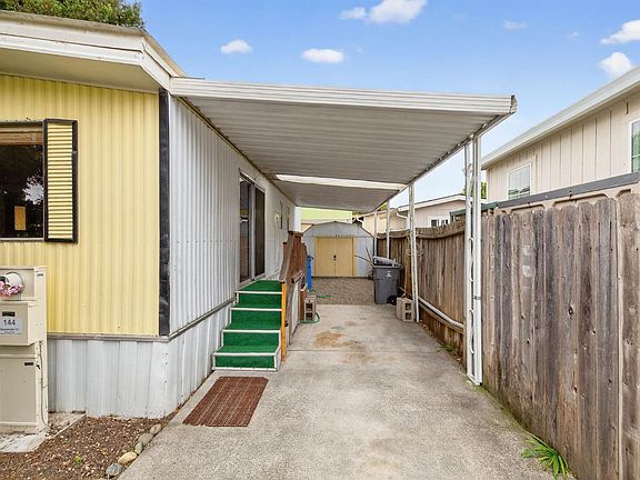 Affordable opportunity in Rancho Feliz Mobile Home Community! This 2-bedroom, 1-bath double-wide offers 864 sq. ft. of living space, plus a covered deck, carport, and storage shed. The yard features mature avocado and lime trees, along with a small Cedar of Lebanon, adding a touch of natural charm. A true fixer-upper with great potentialbring your ideas and make it your own! Space rent is approximately $600/month. Buyer must be approved by park management. Home sold as-is.