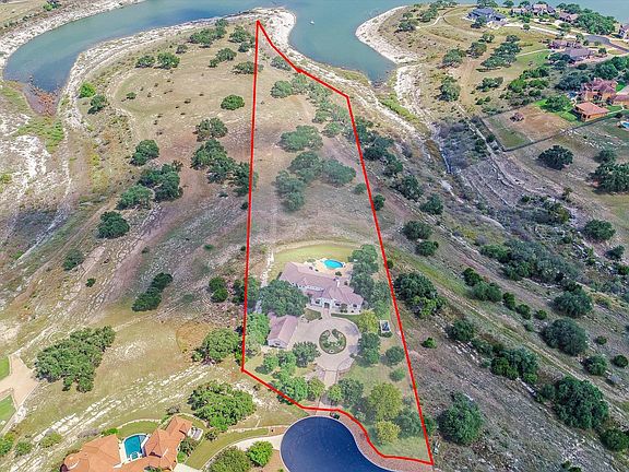 An exceptional opportunity in The Peninsula at Mystic Shores, this ~6-acre waterfront property offers rare privacy, sweeping lake views, and direct access to Canyon Lake. With 1,200+ linear feet of combined main shoreline and cove frontage (buyer to verify), plus a private on-site boat launch/ramp, this residence is positioned for an elevated Hill Country lake lifestyle. The home features 24-ft beamed ceilings, expansive windows, and an open layout filled with natural light. The kitchen includes custom cabinetry, double ovens, and seamless flow to both casual and formal dining areas. Outdoor living includes a full kitchen, fireplace, and generous covered spaces designed for year-round enjoyment. The primary suite includes a stone-clad fireplace, spa-inspired bath, and panoramic water vistas. Two main-level offices provide functional flexibility, while the upstairs media room and game room with wet bar offer ideal spaces for recreation and hosting. Outside, an infinity-edge pool with rock waterfalls overlooks a gently sloping lawn leading toward the shoreline. Additional features include an attached four-car garage with a covered boat bay and workshop, a private irrigation well, and high-speed internet. Ownership in Mystic Shores includes access to a 26-acre lakefront park, resort-style pool, tennis and pickleball courts, sand volleyball, trails, and more. An adjacent ~4-acre waterfront tract is also available offering increased shoreline, enhanced privacy, and future possibilities for guest accommodations or additional amenities. Call Agent for details.