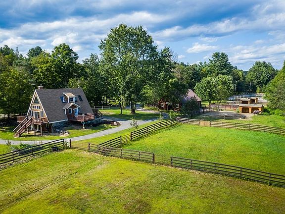 Want to enjoy nature? Need space for some animals or toys? Well, snuggle up with nature in this cozy A-frame with 5-stall barn! This rustic home is situated right along a river, with access to walking trails just steps away. Property boast paddocks and pasture fencing throughout. Large outdoor arena and plenty of turn-out space make this property a true gem for horse enthusiasts, but also makes it suitable for anyone who just wants a little extra outdoor space. Fruit trees, a boat launch on the river and adjacent access to conservation land make this a must-see for anyone who loves the outdoors.