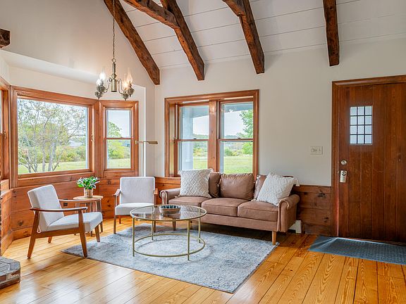 Gorgeous setting in a field of dreams! Formerly home to 2 baseball fields, this property has been a gathering place for many years! The beautiful home has 3 bedrooms, 2 offices, a family room with cathedral ceiling and fireplace and a living room with cathedral ceiling and wood stove - and wrap around deck! Over the detached 2 car garage there is an ADU. Enjoy wide open spaces with distant views towards the salt water marsh. This settling is a very rare find close to the beaches!