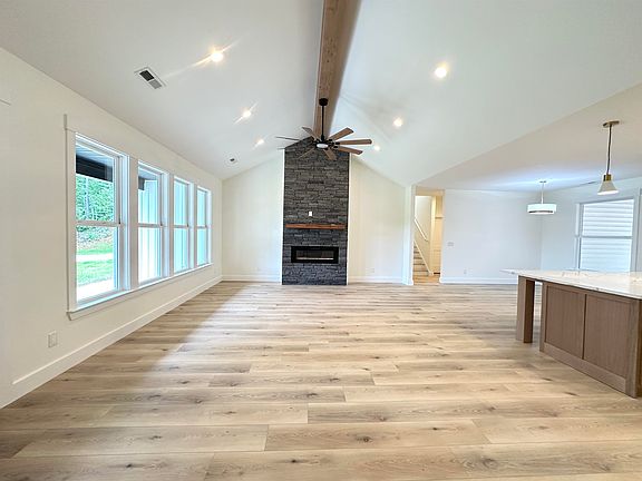 Welcome to your dream home in the heart of Inman, SC! This custom-built, 3 bedroom and 2.5 bath with Flex room upstairs, home is nestled in a picturesque subdivision with a serene lake. Enjoy lake views right from your front porch. The home features a spacious front porch and a large back patio area, perfect for outdoor relaxation. Step inside to discover an open floor plan seamlessly connecting the living room, kitchen, and dining area. The custom kitchen boasts stainless steel appliances, quartz countertops, a spice drawer, utility drawer, and a walk-in pantry. The living room impresses with a stone fireplace and vaulted ceiling. The owner's suite offers a step ceiling, luxurious bathroom with tiled floors, a tiled shower, a freestanding tub, and a generous walk-in closet. Two additional bedrooms share a bathroom with a double vanity. Large windows throughout fill the home with natural light. Additional features include a large laundry room with a utility sink and custom shelves, hallway closet, and a linen closet. The property also includes a two-car garage and an additional 1 car garage, providing ample storage and parking. This home is designed for comfort and style, offering the perfect blend of functionality and luxury.