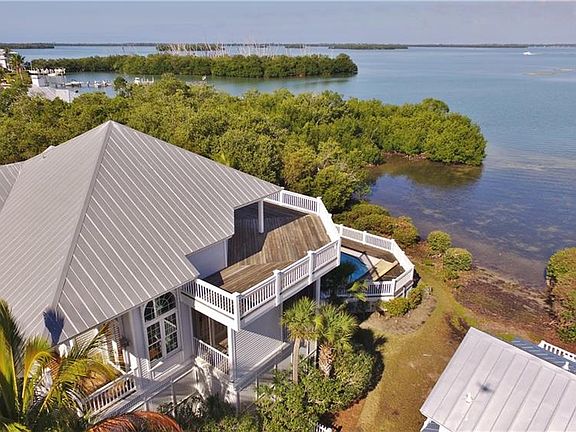 #144 West Wind is a stunning waterfront island home with command presence and unrivaled views. Inside comfort is king with spacious seating areas, ample room to move around and an inviting sense of live-ability. High quality cabinets and fixtures complement the hardwood floors. Elegant stone covers all countertops from the kitchen to the laundry room. Each bedroom features en-suite bathrooms and the powder-room adjacent the living-room is available for visitors. The northwesterly water views are exploited from nearly every room in the house and capture Cayo Costa, Boca Grande Pass and the Intracoastal Waterway. The first floor screened porch hosts a built-in gas grill and leads down to the private heated pool wrapped in Ipe hardwood decking. Outside the upstairs master suite is a private balcony which offers some of the most amazing water views found on Useppa Island, no better place to take your morning coffee, or evening cocktail. An owner's share of a shared dock located only about 100 yards from the property is included in the sale. The dock was recently rebuilt and engineered to accommodate golf carts making loading/unloading a breeze. West Wind has it all and more.