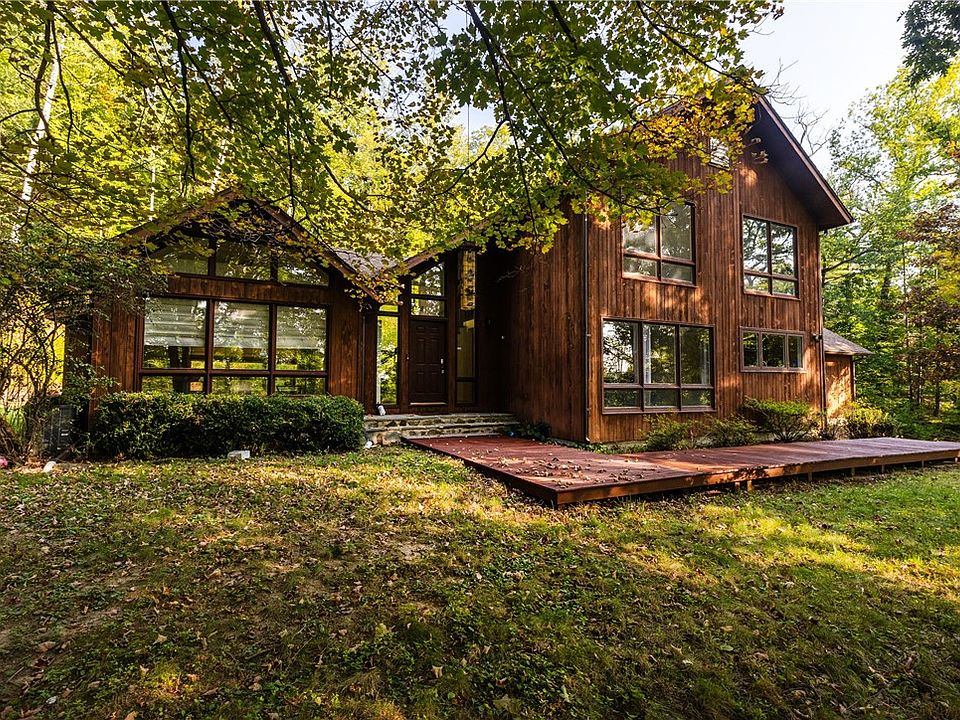 Welcome to this stunning 3-bedroom, 2.5-bathroom contemporary home, perfectly nestled on just under an acre of land. This property offers the best of both worlds: a large, cleared yard for all your outdoor activities, framed by the natural privacy of surrounding woods.